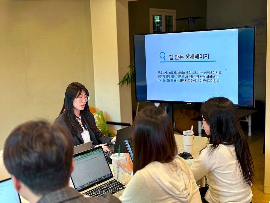 DMS 2024·그로스페스티벌 등 주요 컨퍼런스, 삼성전자·신세계 인터내셔널·한국무역협회 등 기업 강연, 고려대·숙명여대 특강을 통해 쌓은 노하우를 내부 교육에 직접 반영합니다. 실무 피드백 세션, 일하는 법, 커뮤니케이션 워크숍까지 - 대표가 직접 설계하고 진행합니다.